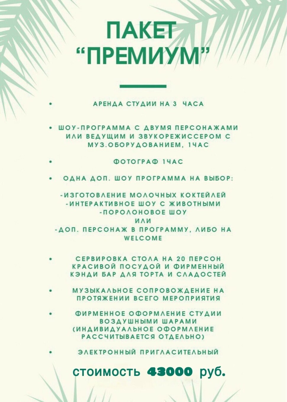 2. Мы бронируем пространство при условии внесении задатка - 5000 руб. В случае отмены праздника с Вашей стороны, задаток не возвращается. Но, мы можем перенести праздник один раз на любую свободную дату и время.